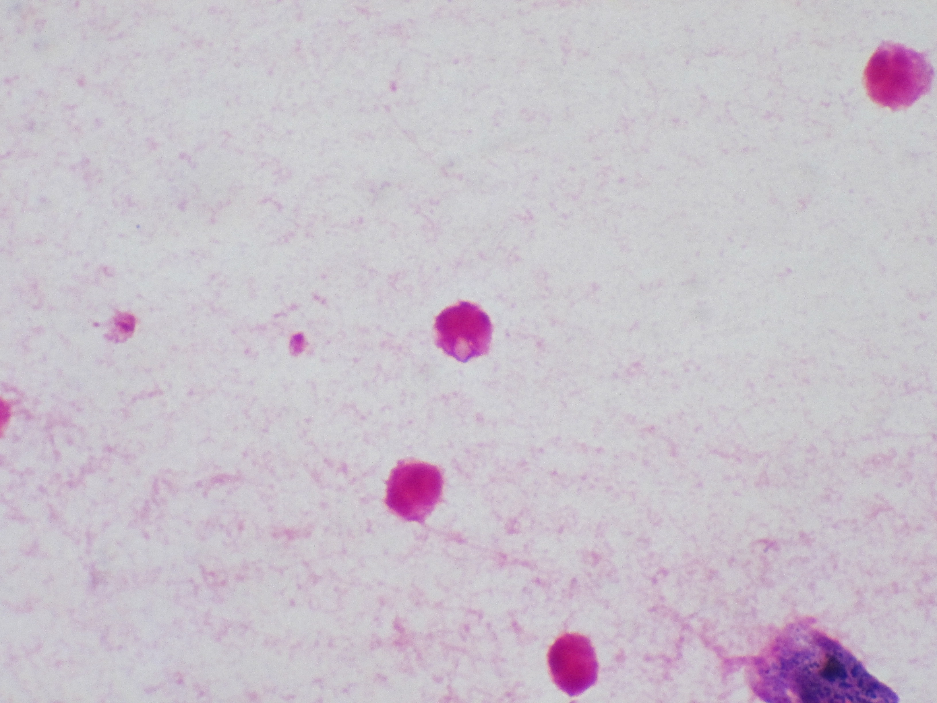 関節穿刺が施行されていて,関節液のGram染色が以下の様な写真です.